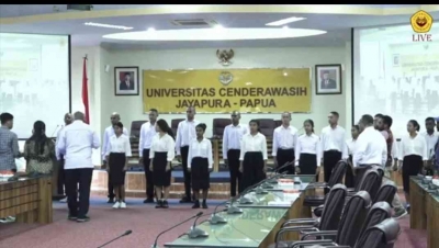 Kegiatan Pengenalan Kehidupan Kampus Bagi Mahasiswa Baru (PKKMB) Universitas Cenderawasih dimulai pada pukul 7.00 waktu Papua serta secara resmi di buka oleh Rektor Universitas Cenderawasih Dr. Oskar O. Wambrauw, SE,. M. Si, agr,